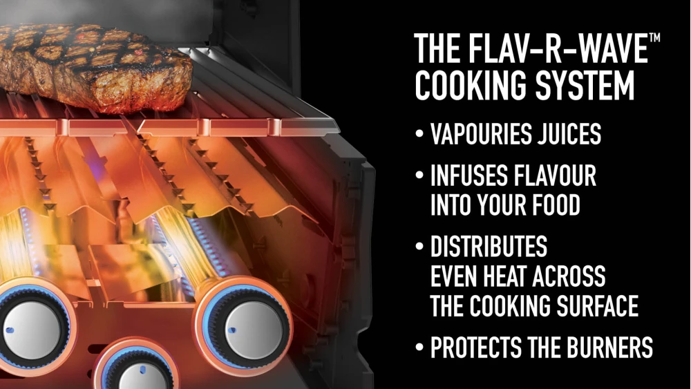 The Broil King Baron 590IR Gas BBQ offers grade A cooking to any occasion. Packed full of features, all manufactured to give legendary Broil King grilling quality. Featuring five stainless steel Dual-Tube primary burners as well as a stainless steel rear rotisserie burner and Infra Red Sizzle Side Burner, the Baron 590 really is a class act. The stainless steel and cast aluminium construction means the the Broil King Baron 590 will be a must at any gathering for years to come. The stainless steel Flave-R-Wave cooking system gives fantastic cooking results and the built in temperature gauge will help to create oven like temperatures for a variety of cooking options. A Rotisserie kit is included in the pack as well as cast iron cooking grids to add even more quality to an already, excellent appliance. The large enclosed cabinet gives room for gas cylinder storage and the stainless steel side shelves feature condiment bins and tool hooks. Each burner is independently controlled by the simple to use control taps and electronic ignition, all mounted on a stainless steel fascia panel. In short, the Broil King Baron 590 is outdoor cooking at its finest. The Baron 590 must be the model to choose if you are looking to take your grilling to the next level. You can add a cast iron griddle to your order by clicking the check box at the top of the screen. Please enjoy an extra 10% off a waterproof cover when you buy this BBQ by clicking at the top of the screen.