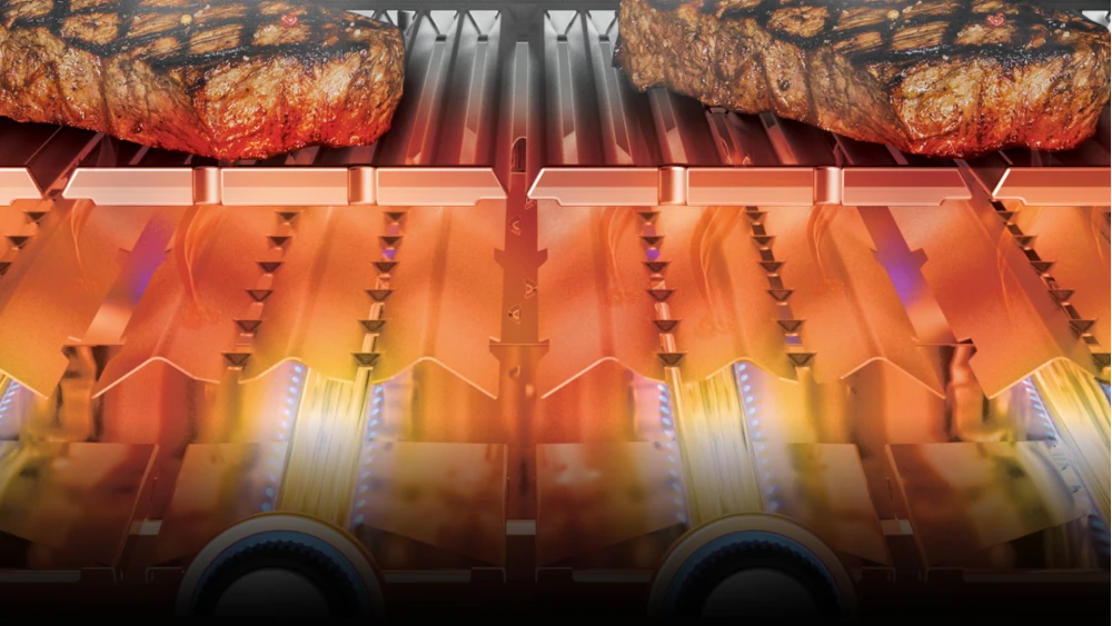 The Broil King Crown 410 Gas BBQ offers quality to any occasion, big or small. This 4 burner BBQ offers performance and versatility with a comtemporary look. It is loaded with features, all available to produce that quality Broil King are well know for. Featuring four stainless steel tube burners to bring an amazing cooking quality. The stainless steel Flave-R-Wave cooking system gives those classic cooking results, vaporizing the juices which infuses back into your food for great flavor. With its high heated painted steel cookbox, black powder coated side shelves, frame and front panel the Broil King Crown 410 is a welcome guest to any BBQ session.